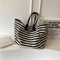 Borsa da viaggio per lo Shopping quotidiano da donna con grande capacità Tote in tela a strisce orizzontali bianche nere con un Design semplice